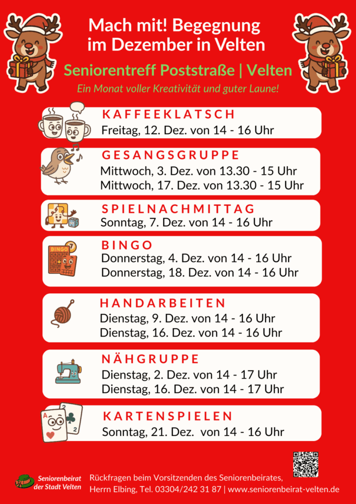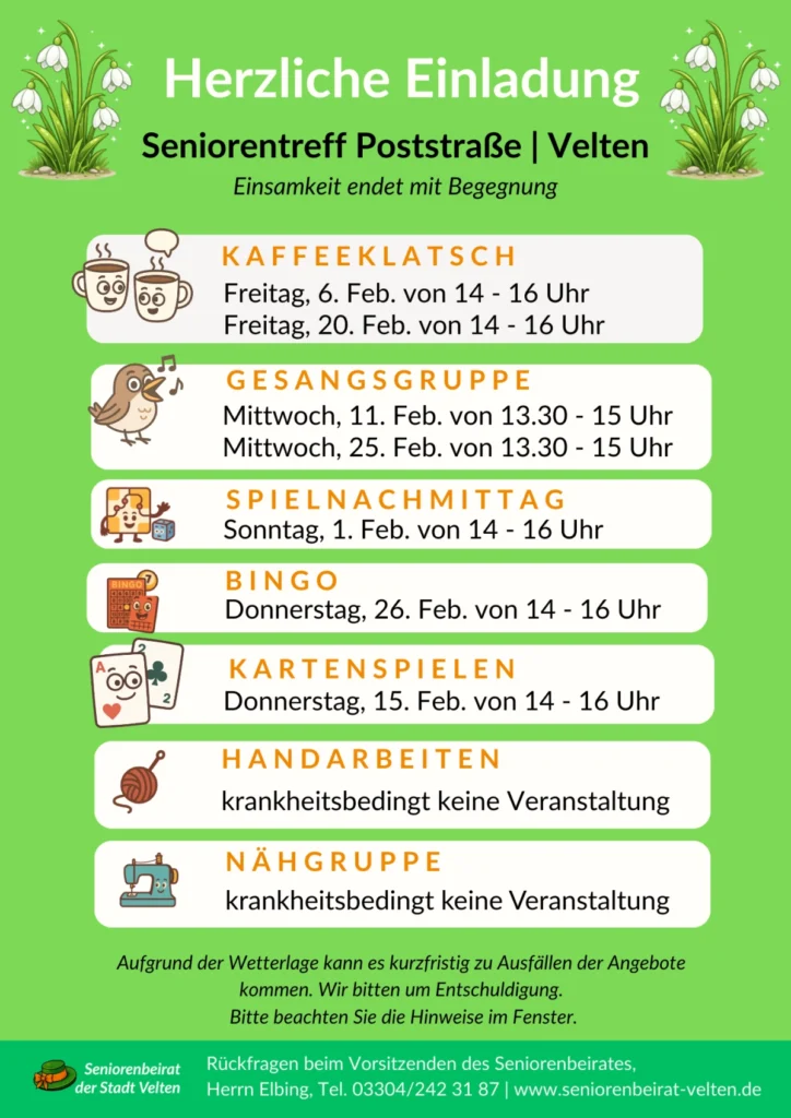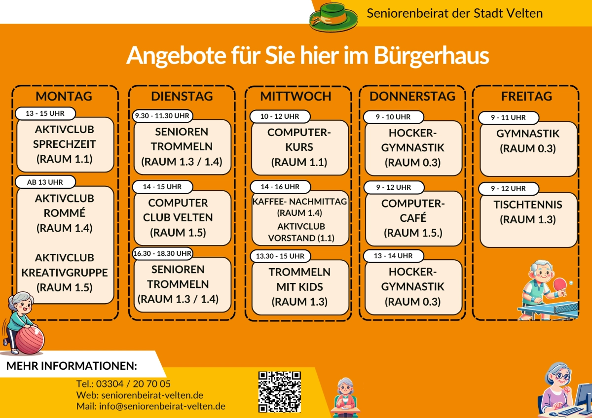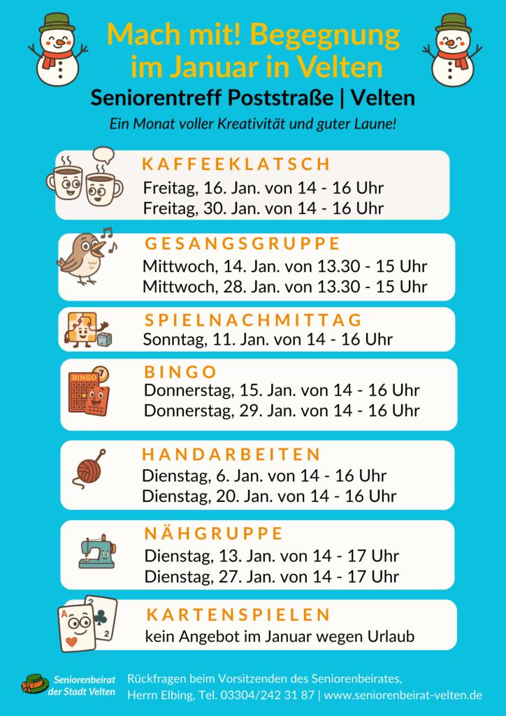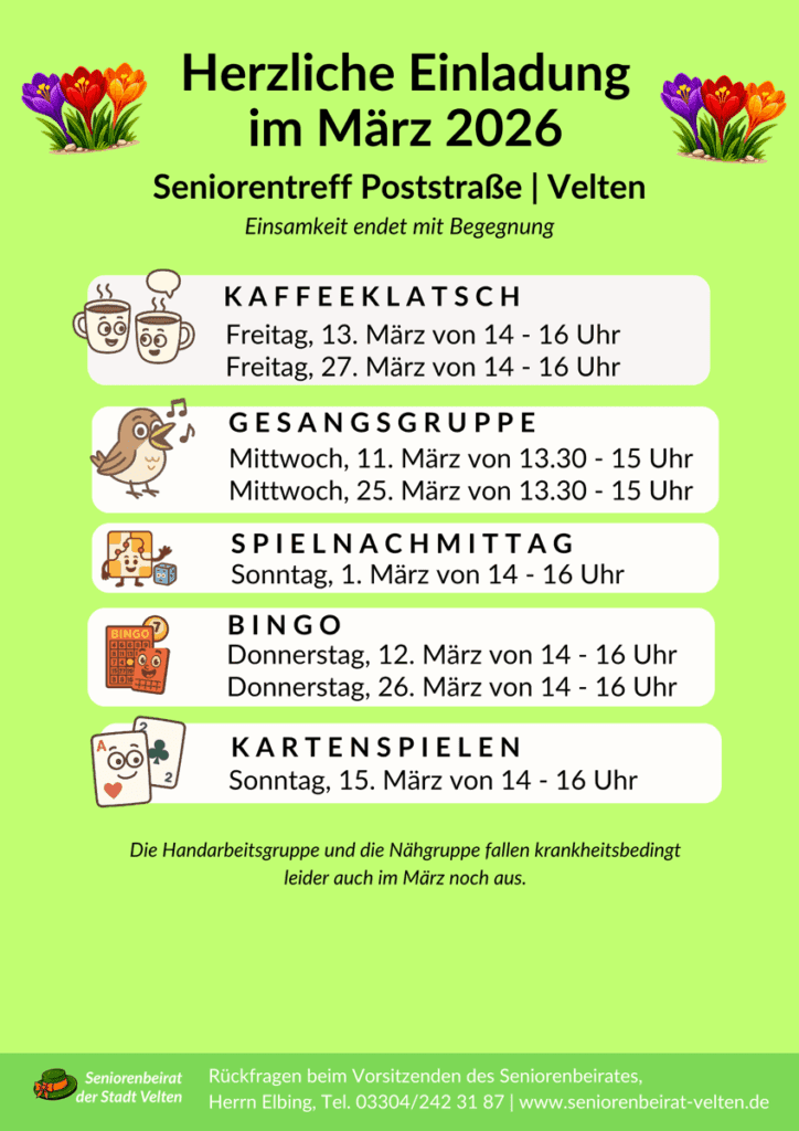 Ein spannender Vortrag zu einem Thema, das Veltener Seniorinnen und Senioren besonders interessiert. Lassen Sie sich inspirieren und informieren! (Themen nach Nennung)