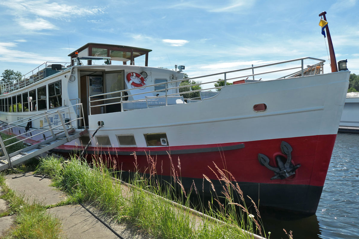Der Treffpunkt war um 11:30 Uhr am Anleger im Hennigsdorfer Hafen. Dort wartete bereits der „Pelikan“, ein historisches Motorschiff der Reederei Spree & Havelschifffahrt, auf unsere Gruppe. Ursprünglich im Jahr 1906 als Dampfschiff gebaut und unter dem Namen MS Mariendorf in der DDR bis 1959 in Dienst gestellt, erlebte der „Pelikan“ in den folgenden Jahrzehnten mehrere Umbauten und Namensänderungen. Heute ist er ein eindrucksvolles Ausflugsfahrzeug, das sich ideal für eine gemütliche Fahrt durch die Berliner und Brandenburger Gewässer eignet.