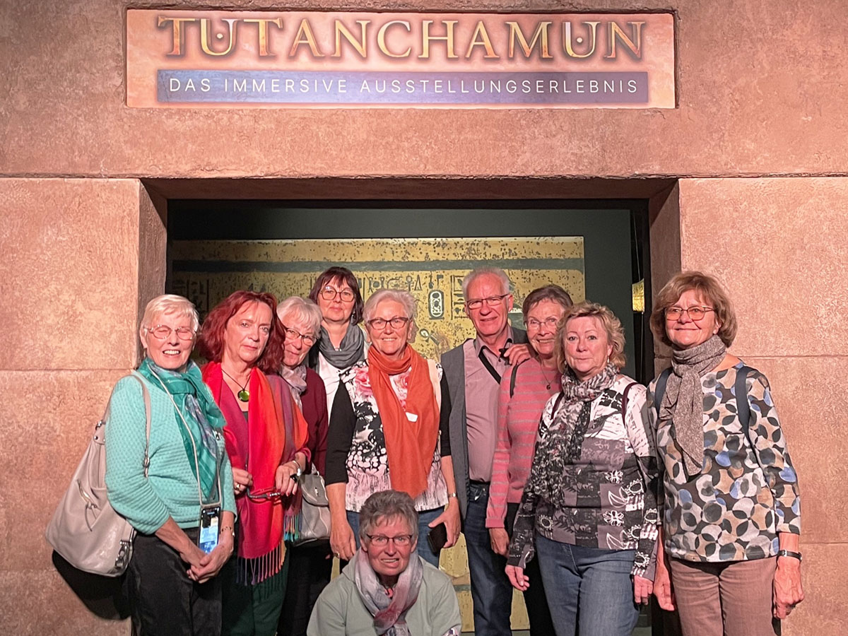 Eine Gruppe von unseren Radlern wagte sich am vergangenen Donnerstag auf ein kulturelles Abenteuer der besonderen Art. Diesmal blieben die Räder jedoch zu Hause, denn es ging nach Berlin – genauer gesagt zur Videoinstallation über Pharao Tutanchamun. Eine spannende Reise durch die Welt des alten Ägyptens wartete auf uns.