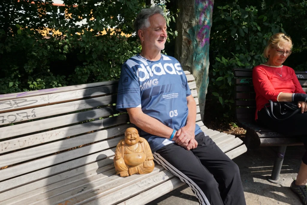 Kurz vor elf Uhr klingt die Musik leiser. Die Gruppe kommt zur Ruhe, Hände senken sich. Der Buddha schaut noch immer – vielleicht ein kleines bisschen zufriedener. Auf der Bank liegt der Glückspfennig, glänzt im Morgenlicht.