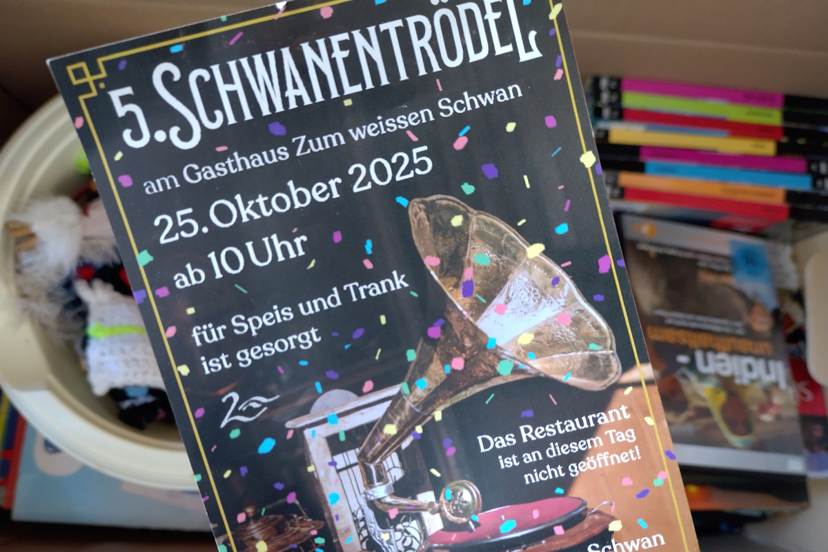 Am Samstag, den 25. Oktober 2025, lädt das traditionsreiche Gasthaus zum weißen Schwan in Velten ab 10 Uhr zum 5. Schwanentrödel im Biergarten ein. Besucherinnen und Besucher können zwischen alten Schätzen, kleinen Raritäten und besonderen Fundstücken stöbern und dabei die einmalige Atmosphäre direkt am Wasser genießen.