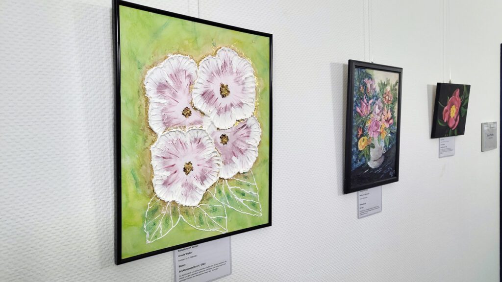 Ein zweiter Schwerpunkt der Ausstellung liegt auf floralen Motiven. Dazu zählen mehrere Blumenbilder in Öl und Acryl. Das Werk „Erntestrauß“ (Öl, 2018) von Melitta von Sychowski zeigt ein rustikales Blumenarrangement und thematisiert laut Werktext die Fülle des Herbstes und die Vergänglichkeit der Natur. Ebenfalls von ihr stammt „Wenn eine Blume vom Licht träumt“ (Öl, 2010), das eine einzelne Blüte vor einem grünen Hintergrund darstellt. Ergänzt werden diese Arbeiten durch weitere Stillleben und großformatige Blütenbilder.