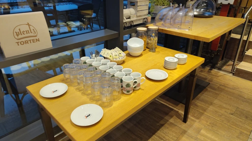 Zum Schluss noch die praktischen Details, die den Besuch planbar machen: Die Bäckerei & Konditorei Plentz öffnet täglich früh und richtet sich klar nach dem Rhythmus des Bahnhofs. Geöffnet ist in der Regel von 6:00 bis 17:00 Uhr, das Frühstücks-Buffet läuft montags bis samstags von 8:00 bis 13:00 Uhr. Sitzplätze gibt es großzügig im Innenraum, bei gutem Wetter auch draußen am Bahnhofsvorplatz. Der Zugang ist ebenerdig, Parkmöglichkeiten und Fahrradstellplätze liegen direkt vor der Tür, Busse und Bahn halten wenige Schritte entfernt. Kurz gesagt: unkompliziert, erreichbar, alltagstauglich – genau so, wie man es von einem guten Bahnhofscafé erwartet.