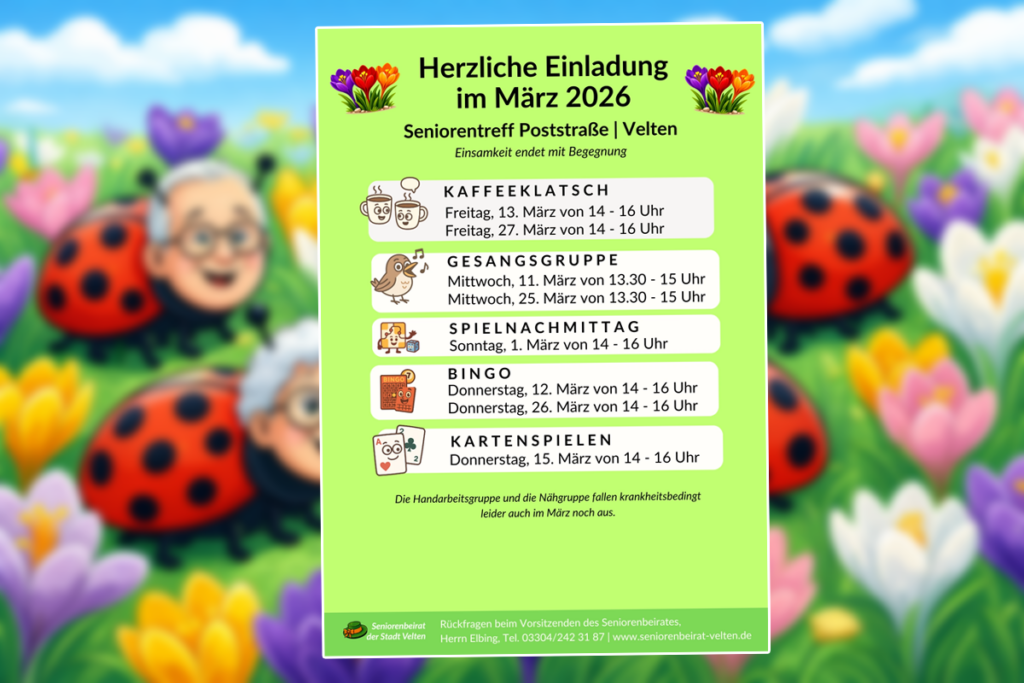 Der Seniorentreff Poststraße ist seit 2019 ein fester Ort der Begegnung im Herzen von Velten. Gerade jetzt, wenn die ersten echten – gelben, weißen und violetten – Krokusse blühen, zeigt sich: Frühling beginnt mit Farbe. Und Gemeinschaft beginnt mit Begegnung.