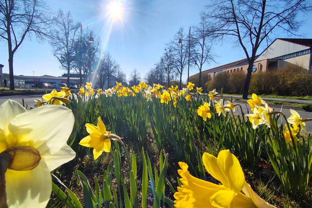 Gestern war ich auf der Poststraße unterwegs, so gegen neun. Die Sonne stand schon erstaunlich hoch, dieses klare Frühlingslicht, bei dem selbst eine Verkehrsinsel freundlich aussieht. Und genau dort blühten sie: die Narzissen zwischen Lidl und Ofen-Stadt-Halle. Gelb und weiß, mitten im Alltag, zwischen Ampel, Autos und Einkaufswagen. Man läuft nicht einfach vorbei. Man bleibt wenigstens kurz stehen.